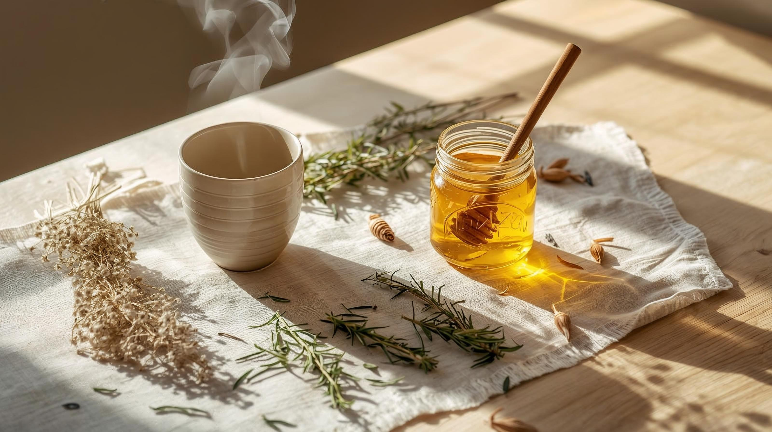 Uma chávena quente, uma colher de mel, um aroma que desperta.