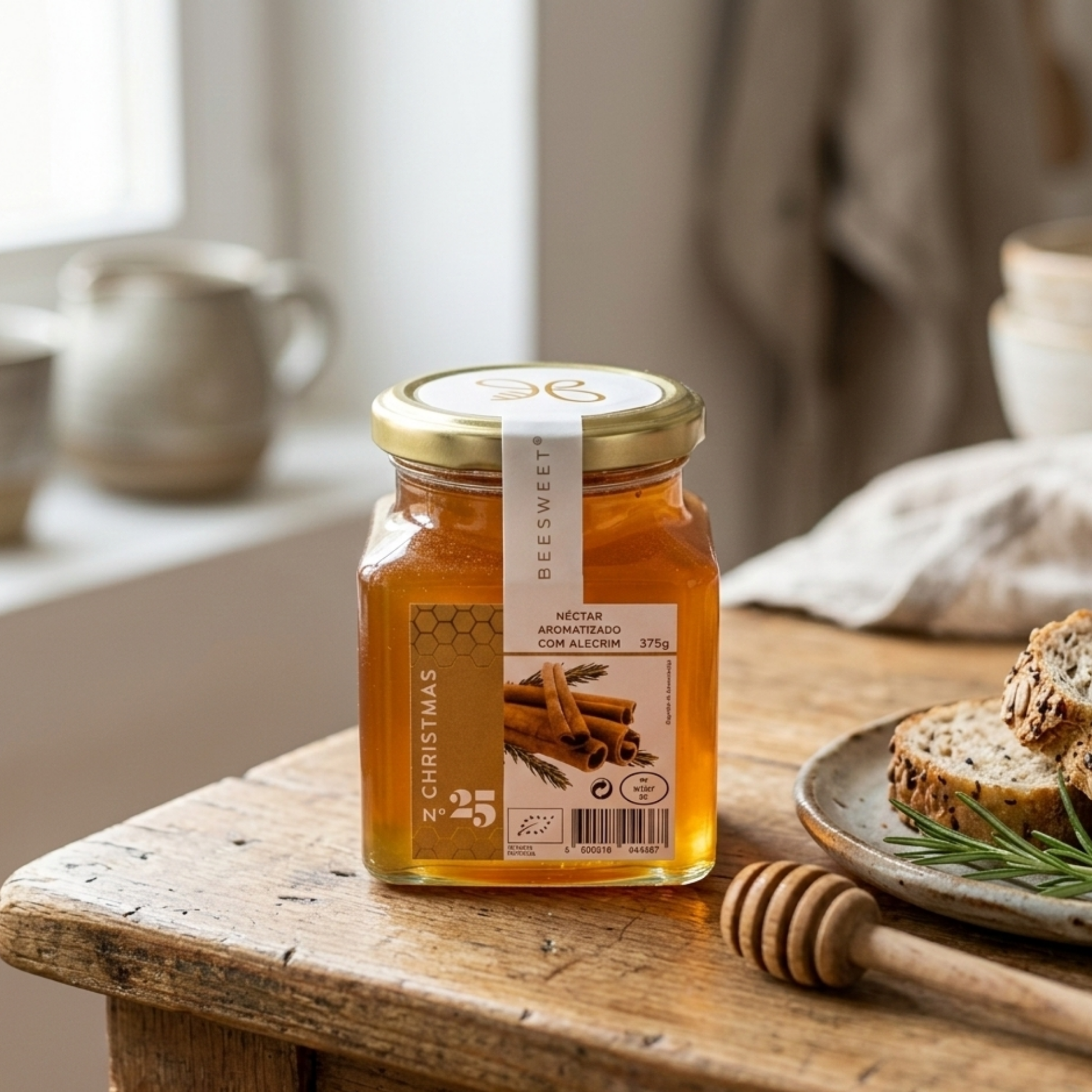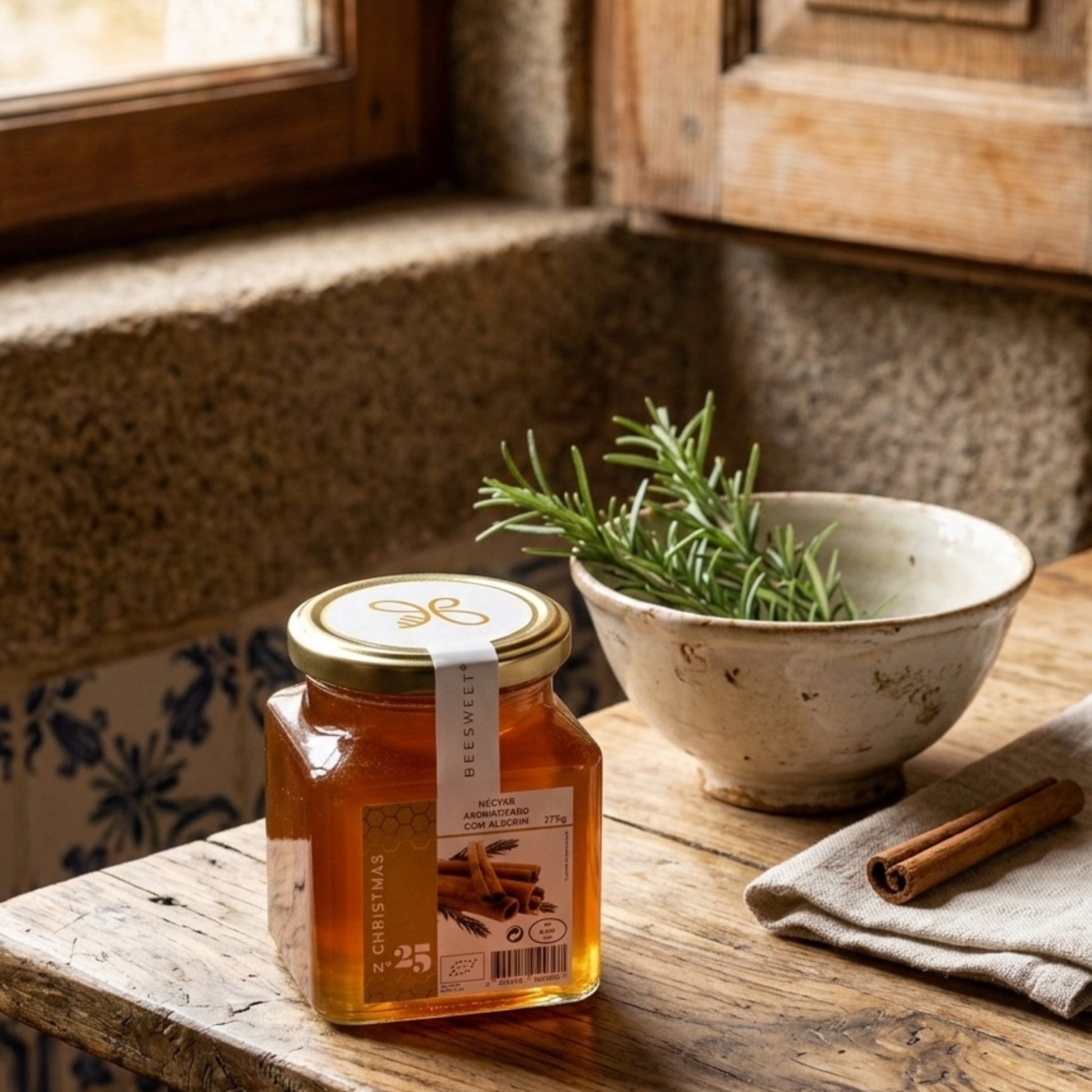 This rosemary-flavored nectar is an invitation to serenity and comfort. Made with Portuguese multifloral honey and organic plants , it offers a warm, slightly spicy, and intensely welcoming flavor.